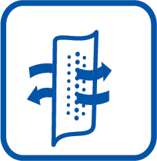 | Det andningsbara materialet gör det möjligt för huden att andas, vilket bidrar till en ökad komfort och god hudhälsa. |